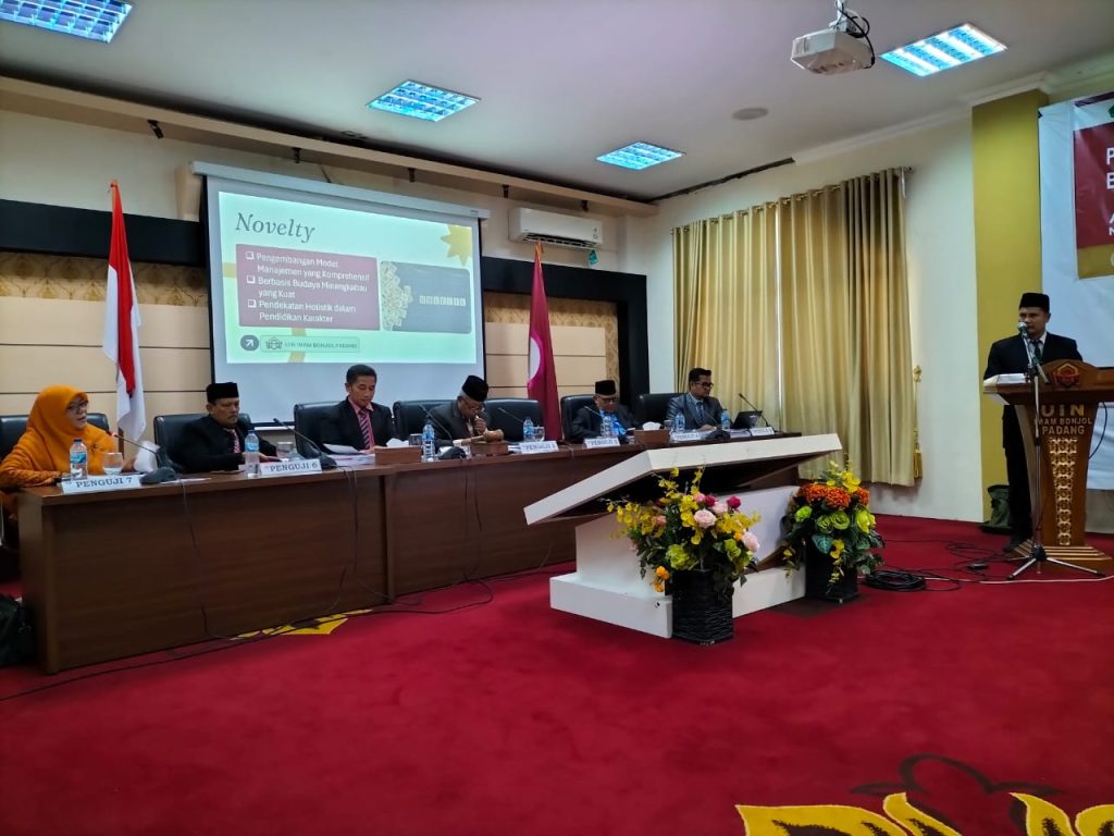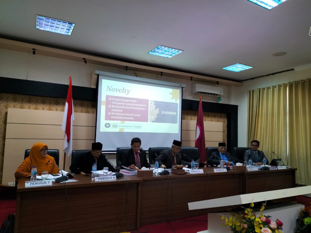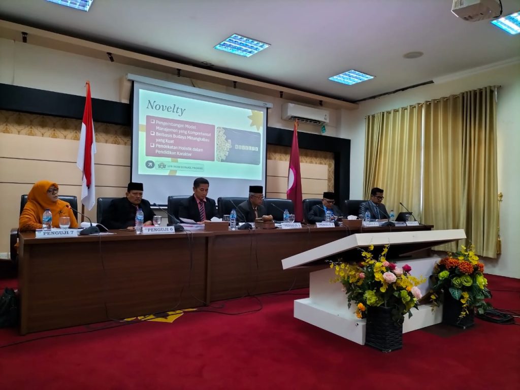 Rabu tanggal 21 Mei 2025 Pascasarjana UIN Imam Bonjol Padang melaksanakan ujian terbuka Prodi S3. Pendidikan Islam atas nama Andi Fery.Dilaksanakan di Aula Pascasarjana UIN Imam Bonjol Padang Jalan. M. Yunus Lubuk Lintah kota Padang. Promovendus memaparkan dan mempertahankan Disertasinya yang berjudul “Pengembangan Model Manajemen Pendidikan Karakter Berbasis Budaya Minangkabau di SMP Negeri Kota Solok”, dihadapan penguji sbb: