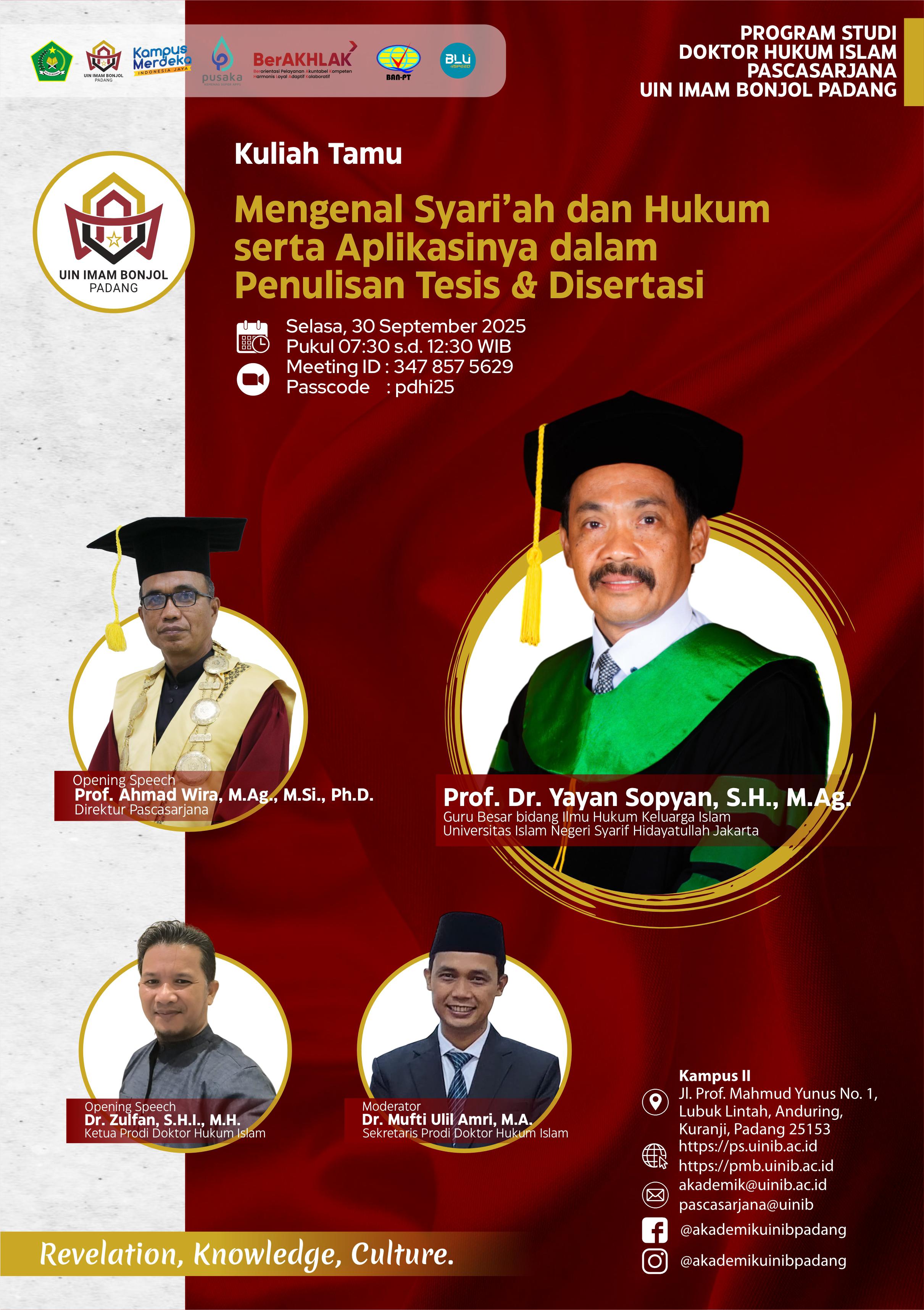 KULIAH TAMU PROGRAM STUDI S.3 – HUKUM ISLAM